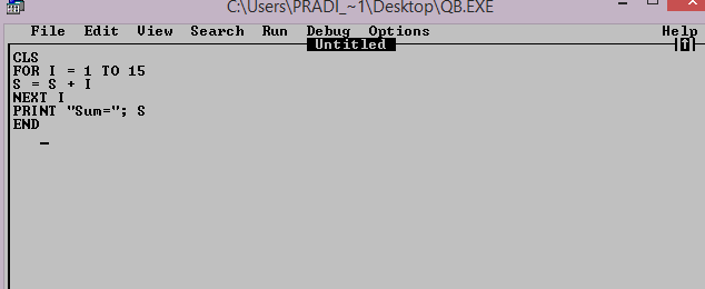 13) Write a program to print sum of first 15 natural numbers using FOR...NEXT statement.
